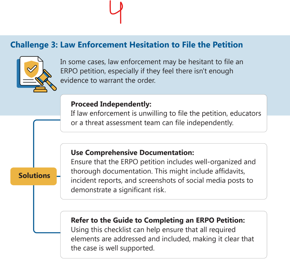 I point you now specifically to the document labeled as “Navigating Common ERPO Challenges” in the shared folder linked below. Besides echoing the above about an ERPO filed on a minor child (see screenshot 3 attached), this document more than anything else I saw in the course gave me the strongest concern.