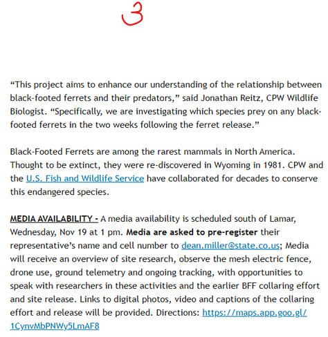 One last tidbit. If you look carefully at the photos in the Colorado Sun article on the ferret release linked second below, you’ll note the photo credit goes to CPW and not to anyone from the Sun.