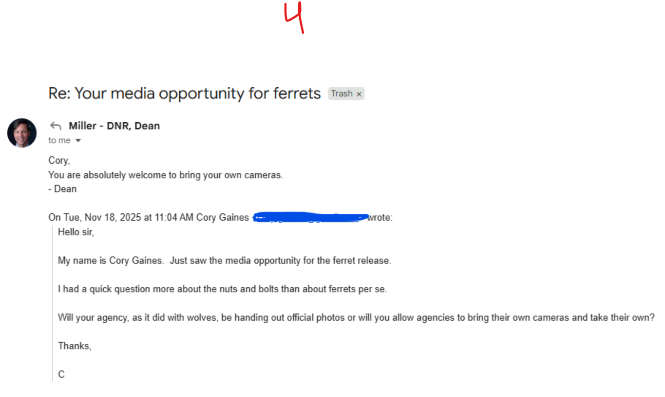 While CPW didn’t limit ferret coverage to one or two outlets, I was curious to know whether or not they were limiting who could take pictures. I was curious to know if they were going to control the outflow of images for ferrets as they did for wolves.