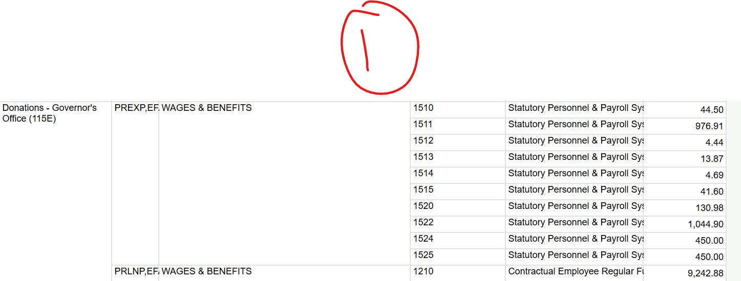 By sifting through and adding, I found that for only half of that month, the governor was paying out a total of about $44K in salary and benefits out of his donations account. If this is a relatively stable average, that means on a yearly basis this comes out to about $1.07 million in salary and benefits paid for by donations.