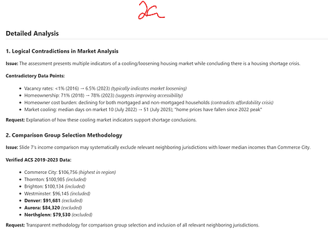 There’s one more point to make before ending. Commerce City hired a private consultant (see “Related” below) to prepare this report. The reader who sent me these things is a careful, considered, and logical thinker, but (and I don’t think this would insult them to say) they don’t possess any special qualifications in urban planning.