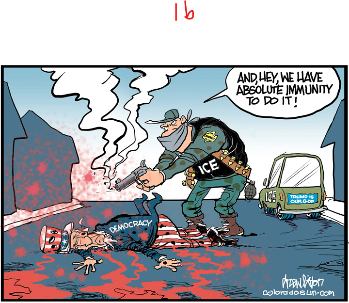 It's either individuals on a chat board talking about following ICE on RTD buses or being disgusted at being next to them, or it's a cartoonist depicting Federal law enforcement as a killer of Democracy, this latter, of course, coming on the heels of broad praise of law enforcement post-January 6th.